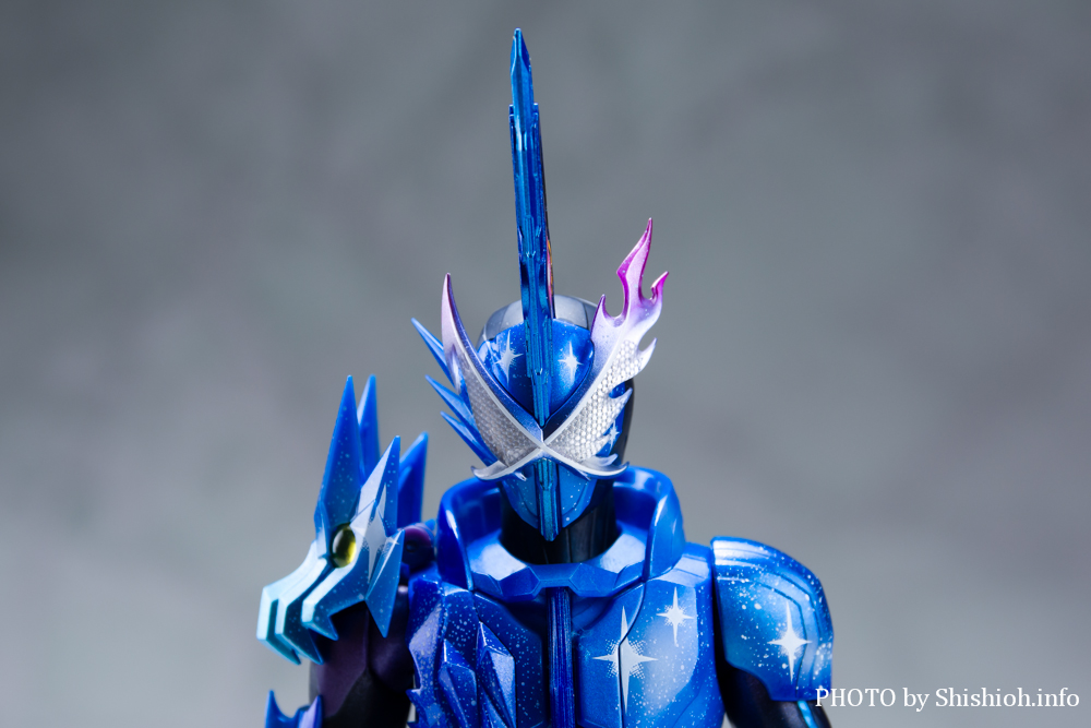 ■ブレイブドラゴン+αの造形に重厚な塗装が施されてます。デザイン的にかなり再現するのが難しい塗装なので、アーツのクロスセイバーでも再現度が微妙です。プレバン限定なのでライドブックの絵柄を再現してくれてもよかったような。インナーの黒い部分はもうちょっとメタリックブルーで塗装した上で紫のグラデーションして胸部や前腕にも白のグラデーションを追加してほしかった。中途半端な印象です。真骨彫版に期待。