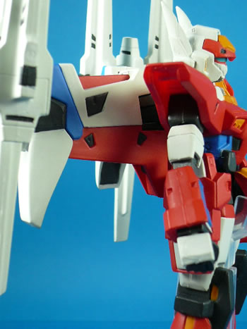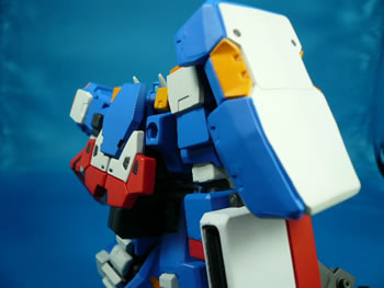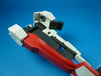 背中のパーツをはずして、パワードパーツを差し込みます。ショルダーアーマーを上にあげてパワードのショルダー